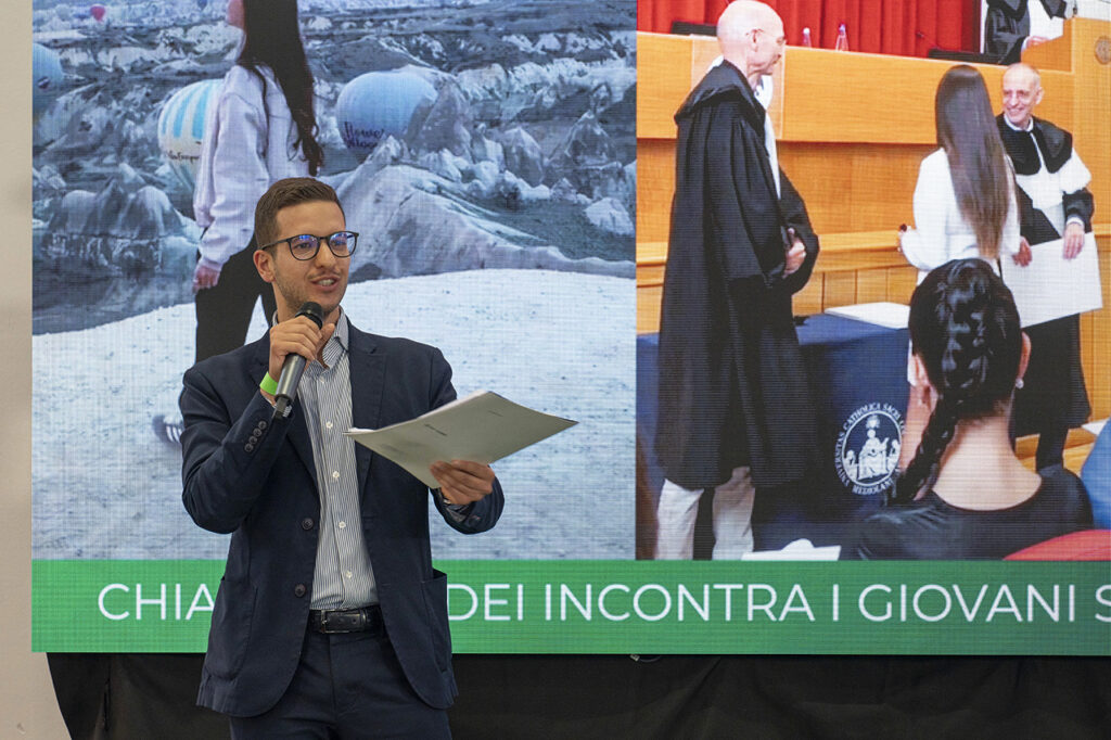 Per arricchire ulteriormente questo momento di premiazioni, i Giovani Soci e Socie hanno intervistato Chiara Casadei, una influencer molto nota tra le nuove genrazioni, che vanta quasi un milione di follower sui social e numerosi progetti comunicativi multimediali all’attivo. Casadei è sbarcata su TikTok nel 2022, nel corso degli studi in «Giornalismo multimediale» seguiti all’Università Cattolica di Brescia. Grazie ai suoi video sugli esami da sostenere, la ragazza ha raccolto un ampio seguito, che è cresciuto ancor di più durante l’esperienza di un mese vissuta nel prestigioso college di Harvard per seguire un corso di filosofia.