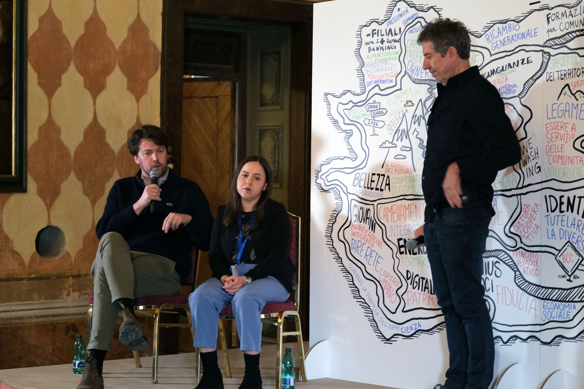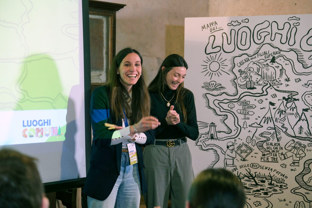 Una mappa illustrata dei luoghi comuni ha accompagnato le attività e definito i temi, presenti e futuri, che giovani soci e socie stanno già affrontando all’interno delle loro BCC, come hanno raccontato nei loro elaborati, necessari per iscriversi alla Spring School.