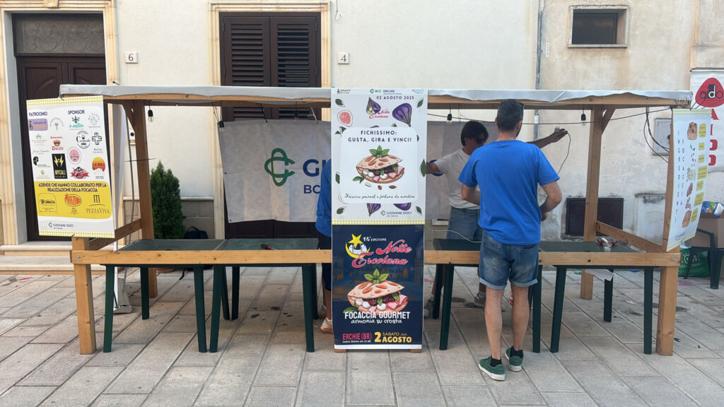Focaccia, menta, mandorle, stracciatella, prosciutto crudo e marmellata di fichi sono gli ingredienti a chilometro zero della “focaccia gourmet” che i Giovani Soci di BCC Erchie hanno preparato per la manifestazione.