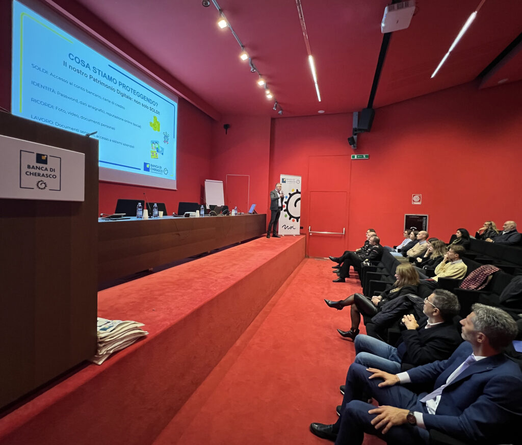 “Il nostro patrimonio digitale non è limitato al denaro, ma include i dati che permettono l’accesso a servizi essenziali, incluso il conto in banca,” ha spiegato Nino D’Amico, Cto dell’azienda torinese HRC e responsabile del progetto Cyber Brain. D’Amico è intervenuto giovedì 23 ottobre nell’auditorium di Banca di Cherasco a Roreto di Cherasco, durante l’incontro intitolato: “Truffe digitali, quando è la mente a cadere nella rete.”